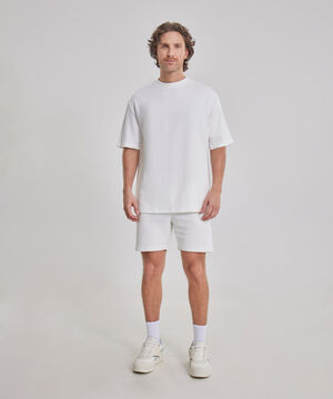 - Bermuda texturizada, pretina resortada con cordón para ajustar, bolsillos en diagonal, silueta regular.