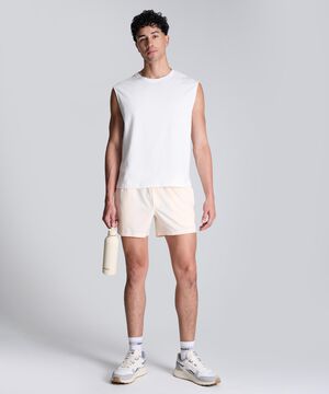 - Short medio con bolsillos en los costados, pretina resortada con cordón para ajustar, textura lisa, cortes láser en la parte trasera.